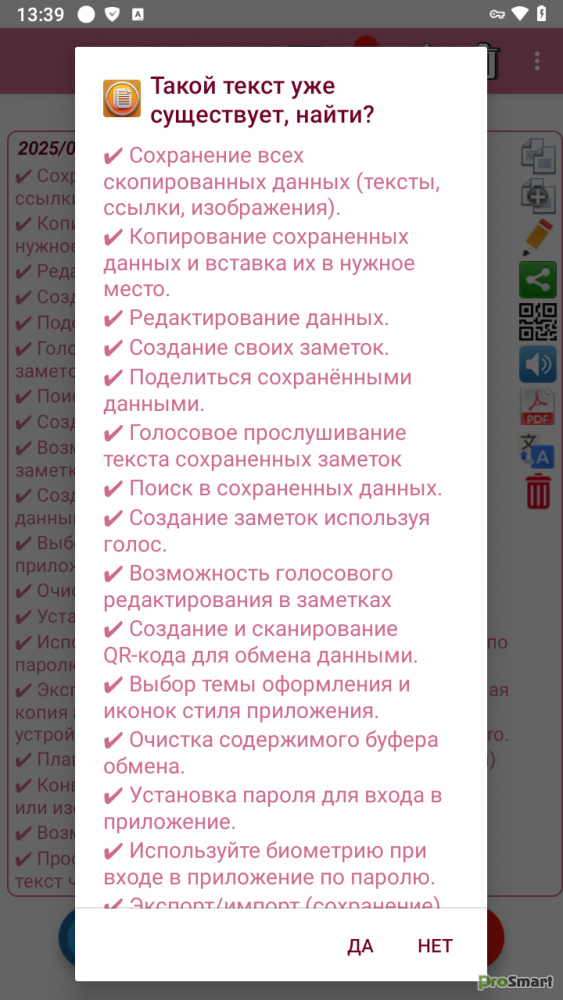 Работает на Android 10+.saves Images из буфера обмена. Преобразует текст или изображения в файл PDF. Импортирует данные из бесплатной версии буферизации Copypaster. В меню бесплатной версии экспортируйте данные. В меню Copypaster Pro Copypaster, выберите «Импорт из бесплатной версии» и укажите папку с сохраненными данными. Позволяет выбор позиций значков. Поддерживает биометрику для входа в систему пароля. Голосовое редактирование заметок. Текстовый перевод через Google Translate. Добавлены испанские и французские языки.