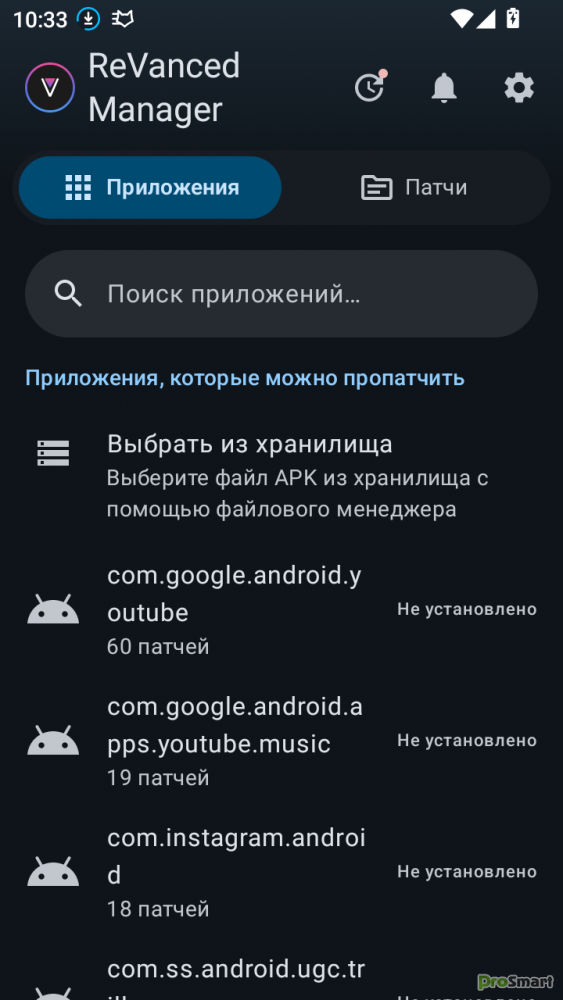 💉 Исправление приложений: примените любой патч по вашему выбору к приложениям Android.
