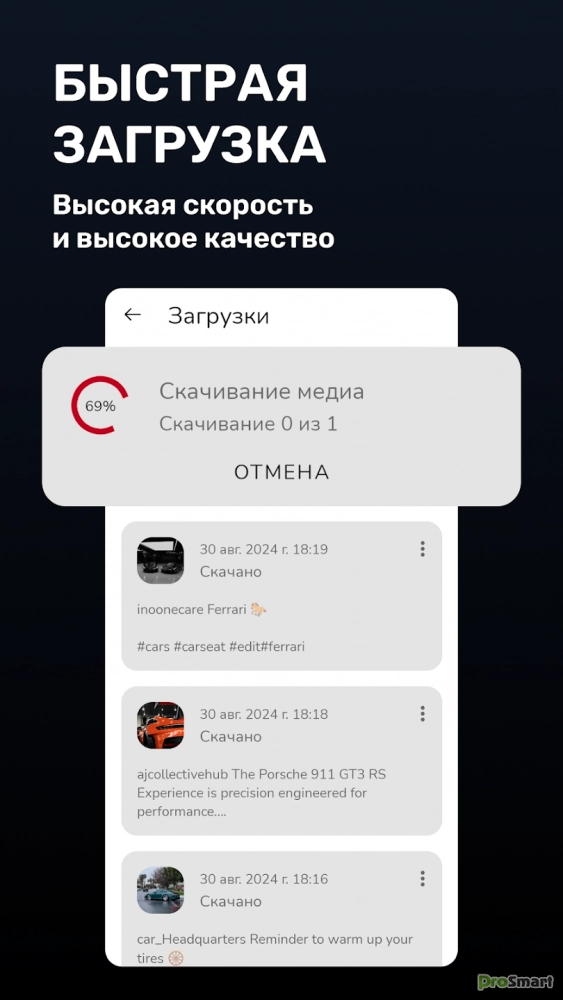 В приложении реализованы все средства для удобного просмотра загруженных видео. Помимо медиафайлов также сохраняется описание видео и его автор. Поэтому вы можете скачать видео из тиктока и получить доступ к контенту даже когда нет интернета.