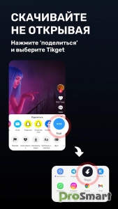 1) Откройте меню и нажмите "Копировать ссылку", а затем перейдите в приложение Tikget и нажмите на кнопку "Скачать".
