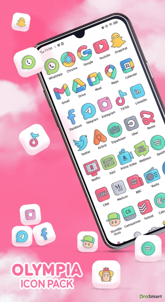 ⚡Олимпия — это современная тема значков для Android, изысканное и уникальное приложение с пакетом значков мультфильмов с мультяшным дизайном и красивыми пастельными тонами. Каждая иконка представляет собой оригинальный шедевр и создана для того, чтобы создать уникальный опыт, который будет идеальным и чистым при установке на ваш мобильный телефон.