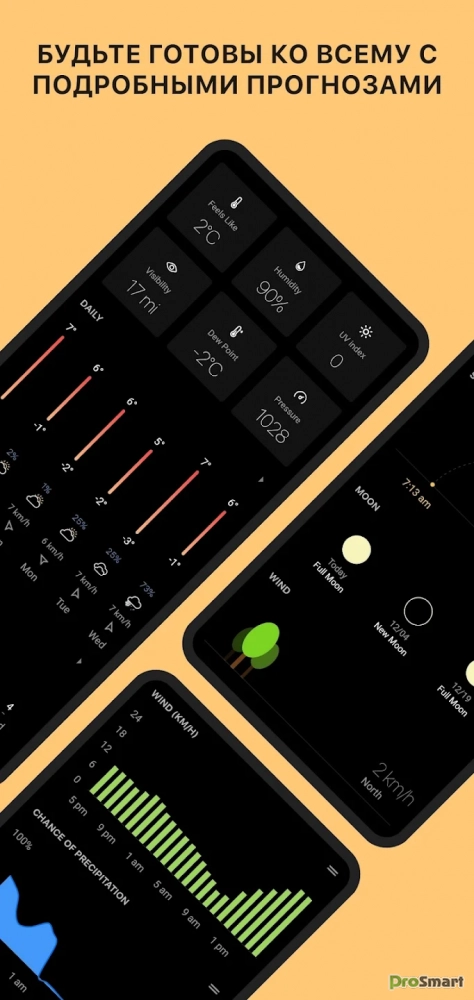 ● Будьте готовы к любым ситуациям с прогнозами погоды 24/7 и вероятностью дождя.