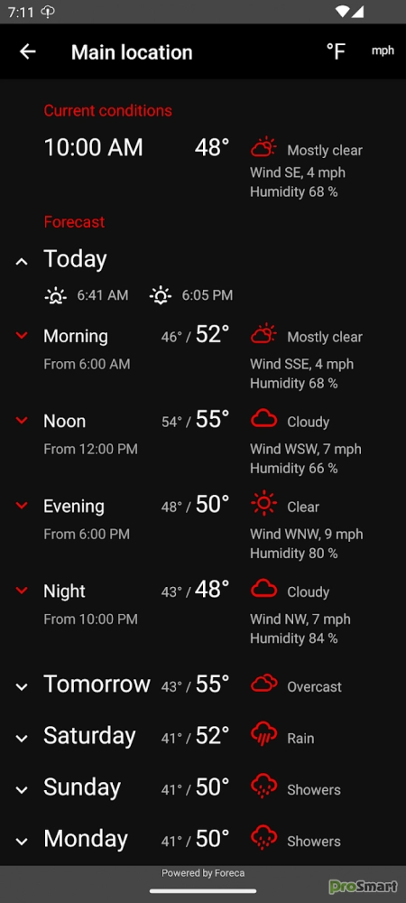 • Оповещения о любых суровых погодных условиях.