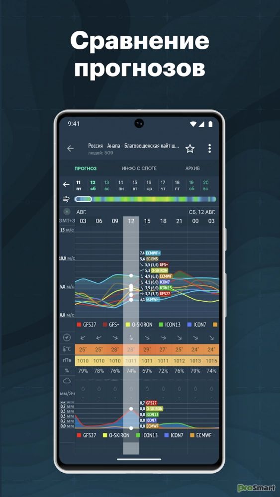 ❺ Прогноз ветра для любой точки мира на 10 дней вперед с шагом в 3 часа (GFS, ECMWF, WRF8, AROME, ICON, NAM, Open Skiron, Open WRF, HRRR (Подробнее: https://windy.app/guide/windy-app-weather-forecast-models.html))