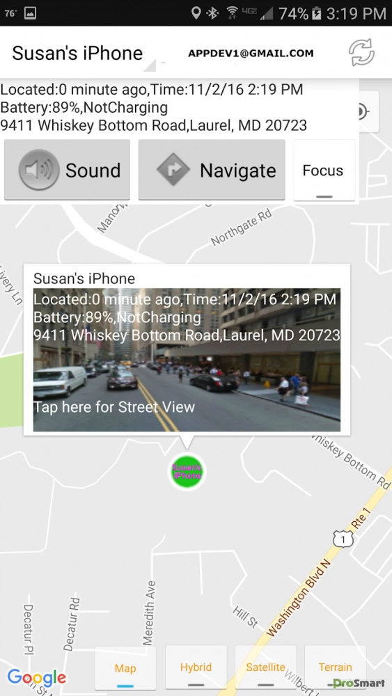 - Отмечает местонахождение устройства в Google Maps. Приложение сделает все, чтобы показать вам наиболее точное местонахождение вашего устройства. Зеленая иконка - знак точного местонахождения устройства. Серая - знак того, что устройство найдено, но информация о его местонахождении требует усточнения.