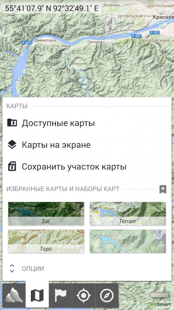 • Встроенные онлайн-карты (автосохранение в память устройства, дорожные, топографические, спутниковые карты) и онлайн-слои (названия дорог, тени холмов, контуры высот);