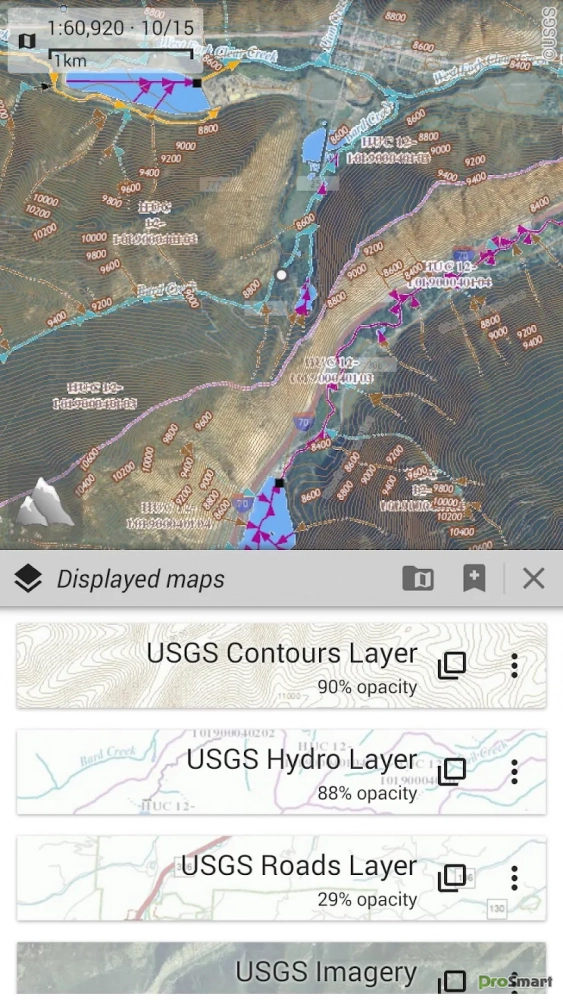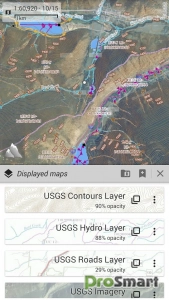 • Одновременное отображение нескольких карт слоями с возможностью регулировки непрозрачности/контрастности/яркости/насыщенности/смешивания/оттенка отдельно для каждой карты.