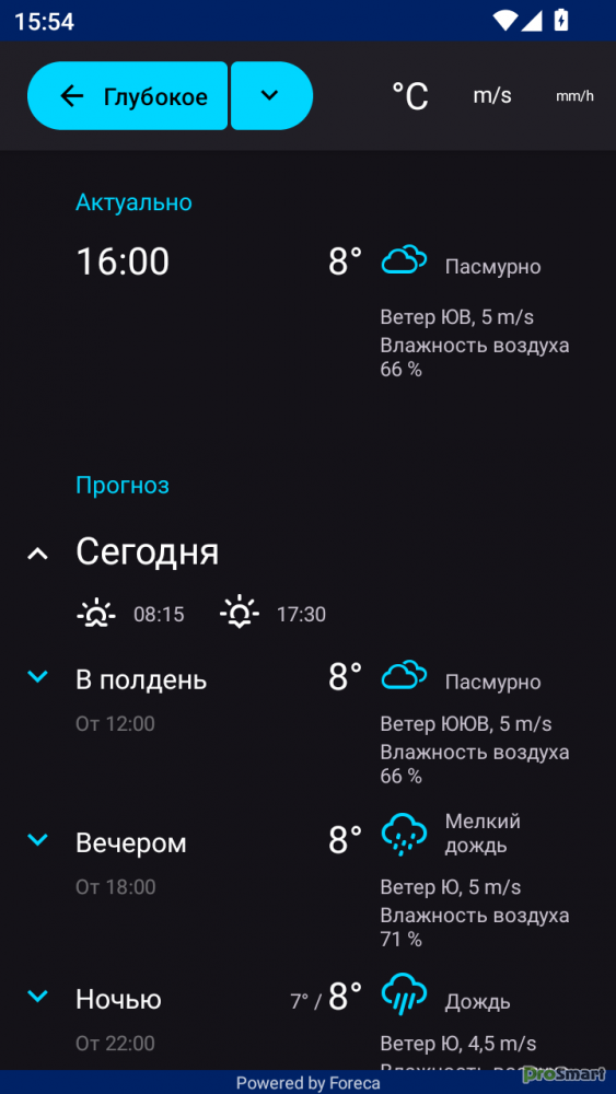 • NEW: Расширённые данные прогноза на доп. странице (не на карте)