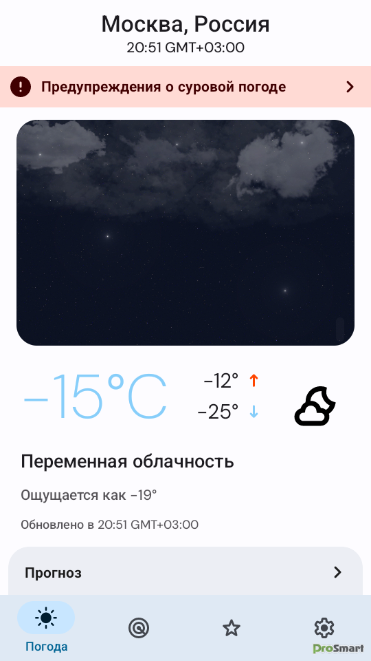 • Оповещения о суровой погоде