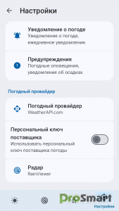• Уведомление о текущих погодных условиях