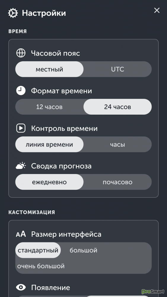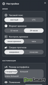 Настройте единицы измерения температуры, скорости ветра, часовой пояс, стили анимации и многие другие функции с помощью наших расширенных настроек.