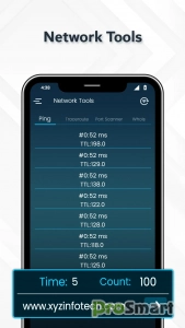 Включает мощные инструменты для ИТ-администраторов, такие как ping, traceroute, сканер портов, поиск DNS, локатор IP и многое другое — все, что вам нужно для оптимизации, защиты и анализа вашей сети в одном приложении.
