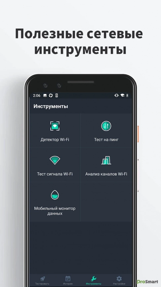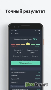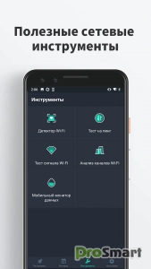 - Проверка скорости интернета, включает тест скорости загрузки и отдачи, задержку пинга, также анализ возможностей сети по результатам проверки скорости Wi-Fi.