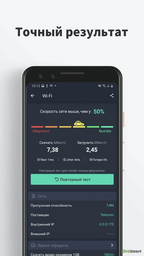SpeedTest Master может сотворить маленькое чудо, спидтест сети продемонстрирует текущую скорость интернета и расскажет много полезной информации. Вы также можете сравнить Вашу скорость интернета с другими пользователями, посмотрев сравнительную статистику результатов спидтеста у других пользователей со всего мира.