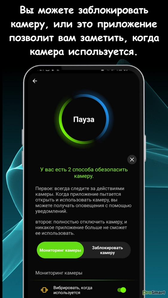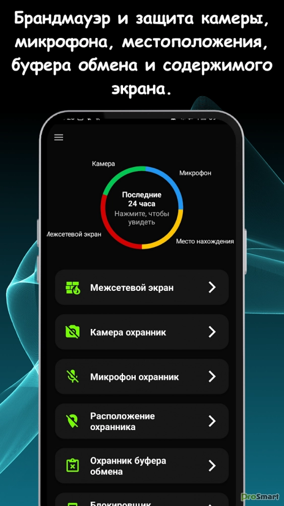 + Блокировщик камер, микрофонов и местоположения с уведомлениями безопасности в реальном времени.