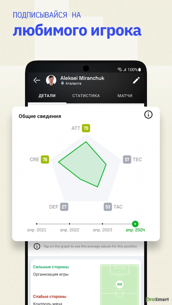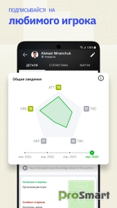 ⚽ Обзор характеристик: визуализируйте ключевые характеристики игроков, чтобы быстро оценить их полноту