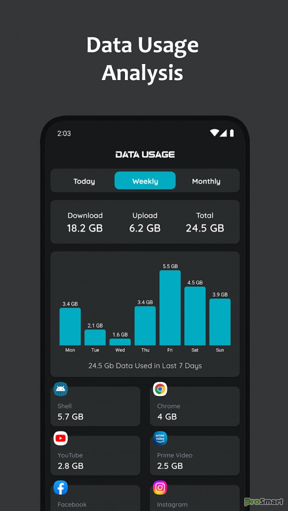 ✔ Анализ использования данных — узнайте, сколько данных каждое приложение потребляет и эффективно управляет вашим использованием.