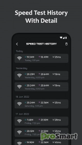✔ История теста скорости — просматривайте результаты прошлых тестов с подробной информацией.