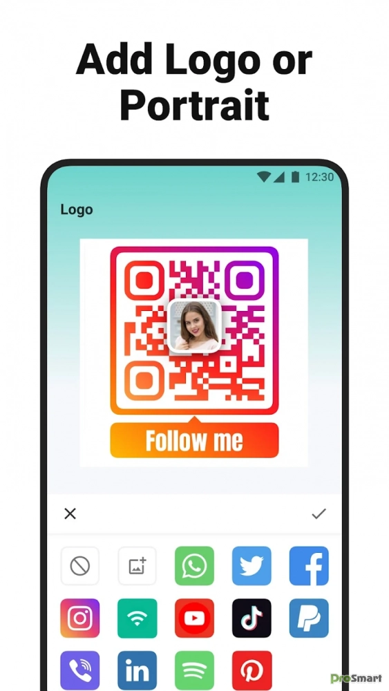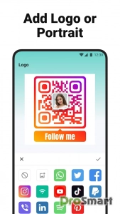 QR Code Generator Pro - QR Creator & Barcode Generator поддерживает добавление логотипа в QR-код. Вы можете добавить свой социальный портрет или логотипы компании в свой QR-код, чтобы персонализировать его.