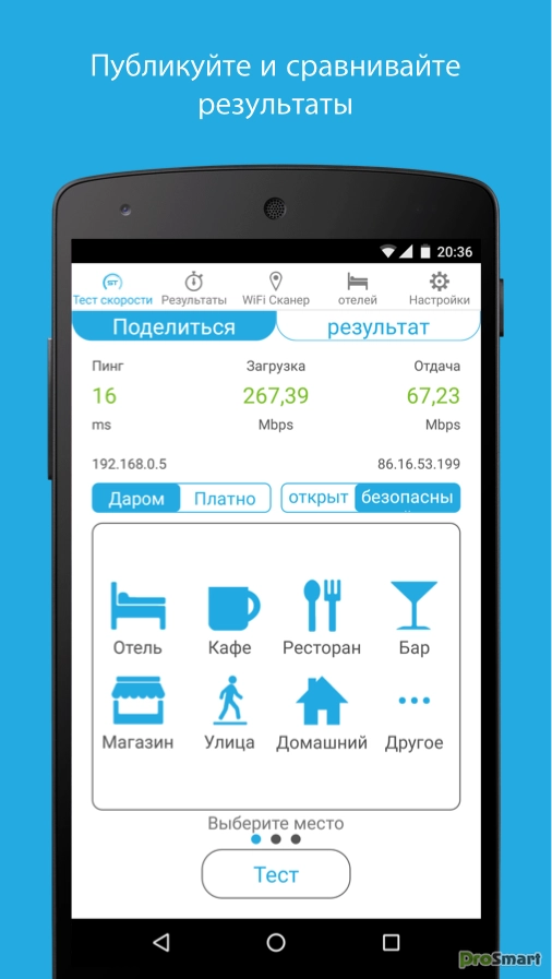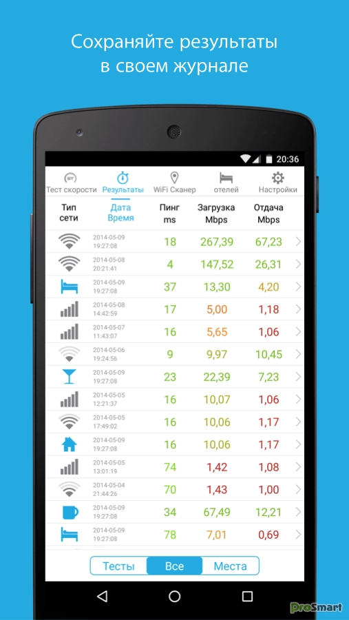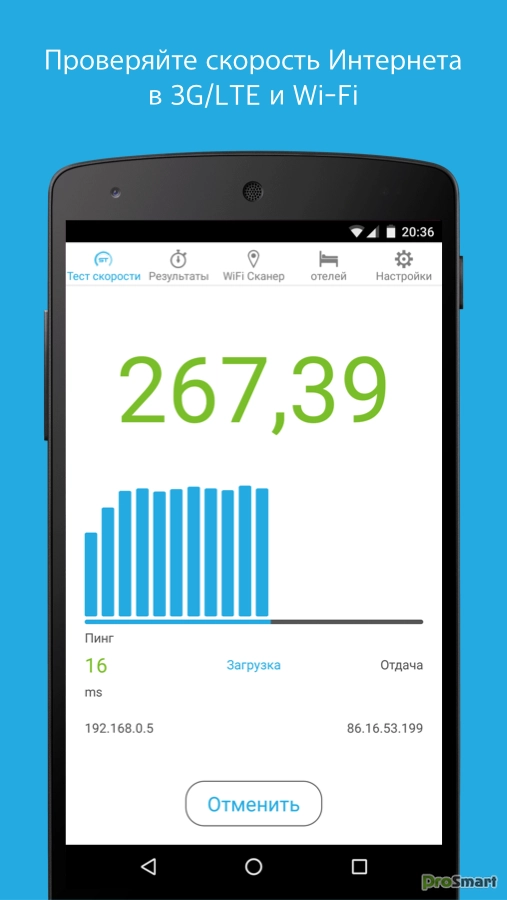 - Проверь свою скорость Скачивания и Отдачи, а также пинг на сотовых и WiFi сетях