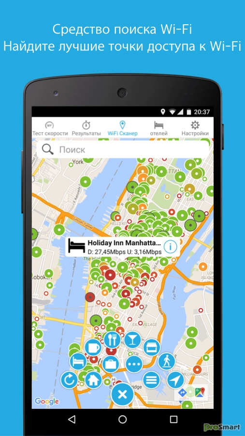 Speedcheck занимается созданием базы WiFi точек с расчетной скоростью интернета. Speedcheck позволяет тебе создавать и добавлять в общую базу информацию о точках WiFi расположенных в гостиницах, отелях, ресторанах и кафе, которая, в свою очередь, будет доступна для всех пользователей Speedcheck на Android и iOS. К слову, SpeedSpot единственная поисковая машина в интернете, отслеживающая скорость интернет-соединений в отелях, информацию по которым можно получить посредством браузера, перейдя на сайт SpeedSpot.org.Разработчик: Internet Speed Test, Etrality