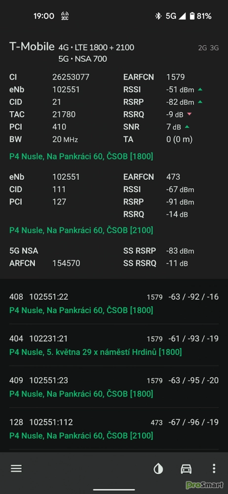 Поддерживаемые сети: GSM, CDMA, WCDMA, TD-SCDMA, 4G LTE, 5G NSA и 5G SA. Когда дело доходит до LTE, NetMonster также обнаруживает агрегированные несущие (так называемые LTE-Advanced). В регионах, где доступно 5G NSA, вы можете увидеть, используется ли NSA или оно только что развернуто, также доступна агрегация операторов связи в 4G+5G NSA.