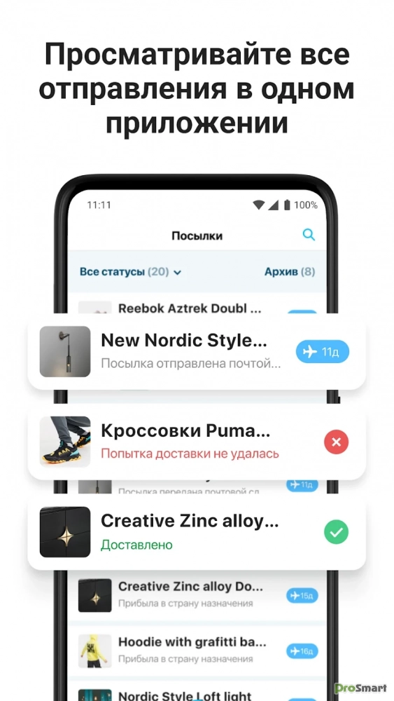 Достаточно установить бесплатное приложение Posylka.net на мобильное устройство, ввести трекинг-код, и на отслеживание заказов вы потратите меньше минуты. Вся информация о местоположении вашей посылки теперь в вашем смартфоне только по трекинг-коду, узнайте как скоро придут вещи или товары из Китая или других стран.