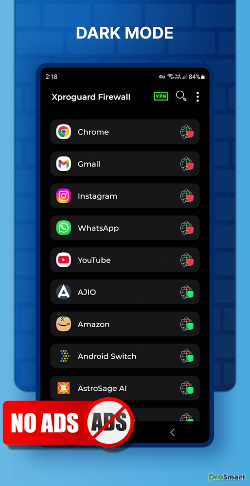 Используя брандмауэр Xproguard, вы можете контролировать, какие приложения имеют доступ к Интернету. Вы можете создать белый список разрешенных приложений или черный список запрещенных приложений.
