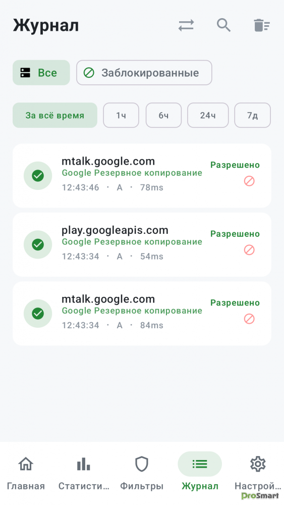 - Журналы DNS-запросов в реальном времени с поиском и фильтрацией.