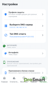 - Защита безопасности — блокирует домены фишинга, вредоносного ПО и вредоносной рекламы.