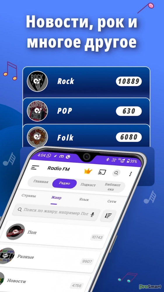 Наслаждайтесь всеми музыкальными жанрами в одном приложении: рок, поп, классика, хип-хоп, электронная музыка, госпел, инструментальная музыка, джаз и многое другое. Для российских слушателей: Радио Шансон, Русское Радио, Европа Плюс, Love Radio, Радио Энергия, Радио Джаз, Радио Монте-Карло, Comedy Radio, Радио Романтика, Zaycev.net, Хит FM и Яндекс.Музыка.