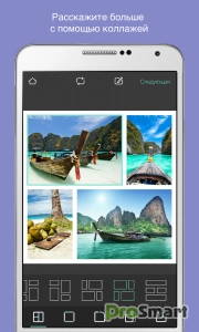 - Создание коллажей фотографий с помощью большого выбора компоновки, фона и интервала между ними.