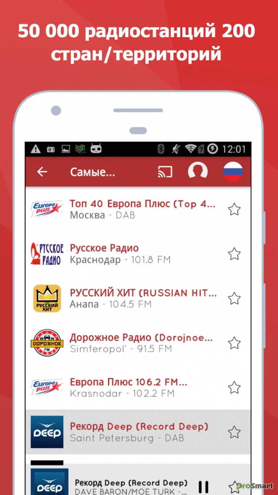 * Некоторые станции могут не работать из-за временного отсутствия доступа к потоковой передаче через Интернет. Это приложение оптимизировано для сетей 3G и Wi-Fi.