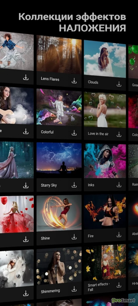 - 150 уникальных фильтров по категориям: «Простой тон», «Старый стиль», «Винтаж», «Ломо», «Летнее настроение» и «Арт».