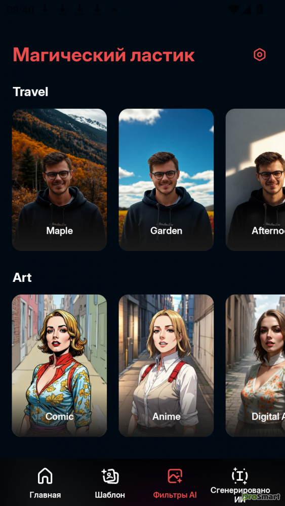 - Замена фона: Поменять фон на фото теперь просто. Выберите новый фон для фотографии и примените его одним нажатием.