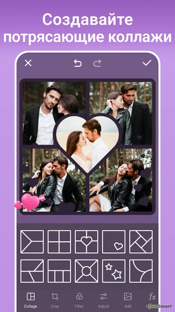 - Выбирайте из более чем 500 макетов PhotoArt и создайте свой фотоколлаж одним нажатием.