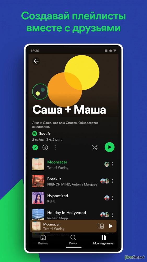• Создавай собственные плейлисты и делись ими с друзьями.