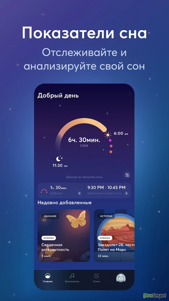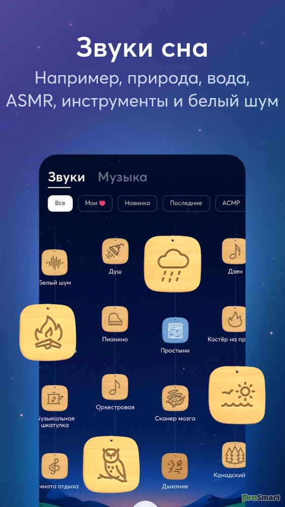 Засыпайте легко, спите крепко и формируйте здоровые привычки с помощью чудесных звуковых ландшафтов, историй на ночь, эффективных практик гипноза и медитаций, настроенных под ваши потребности и предпочтения.