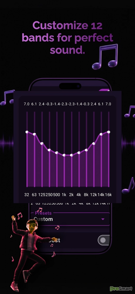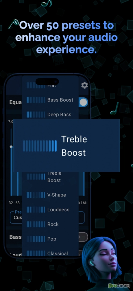 AI Equalizer: Music Enhancer дает вам полный контроль над прослушиванием. Нужны ли вам глубокие басы для EDM, кристально чистый вокал для подкастов или сбалансированный звук для классической музыки - многополосный эквалайзер позволит вам точно настроить каждую деталь.