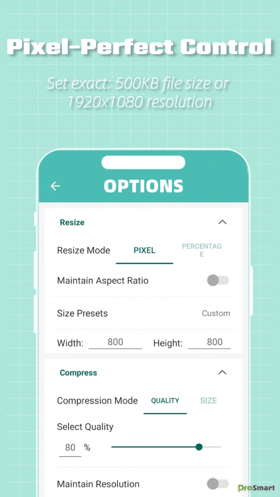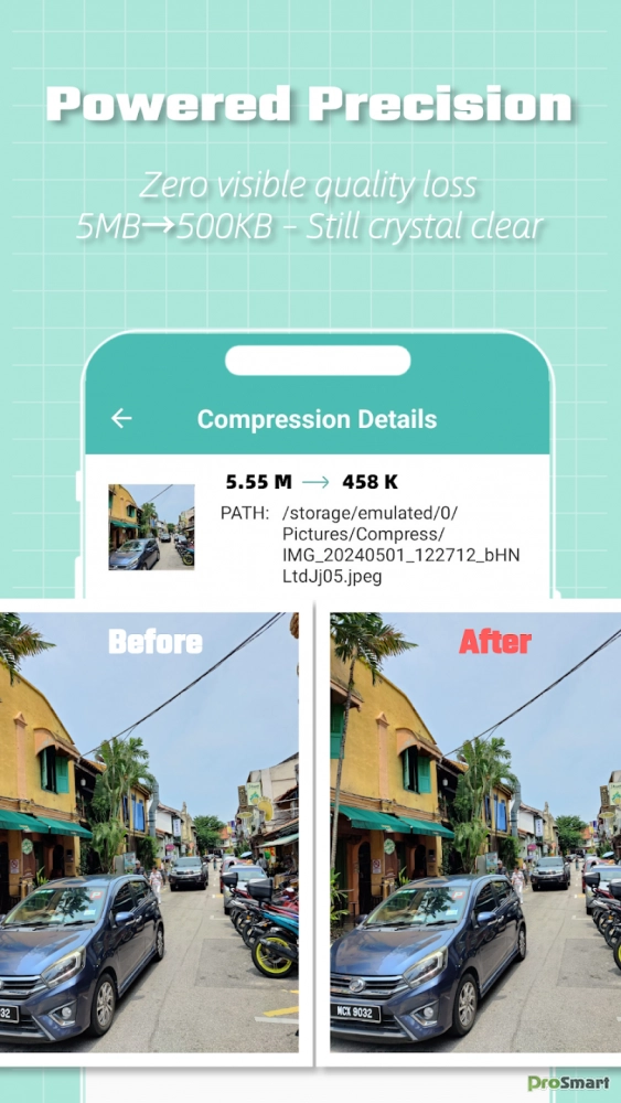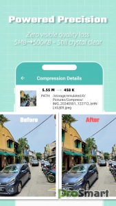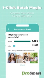 * Отличное качество сжатых фотографий и опциональное качество сжатия