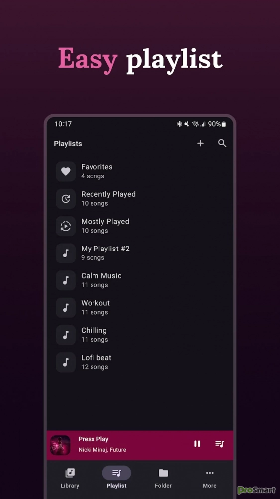 Создавайте и управляйте своим собственным списком воспроизведения и добавляйте в него свою любимую музыку. Вы можете легко создавать, переименовывать и удалять список воспроизведения.