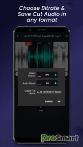 ** Обрезать и вырезать аудиофайлы. Поддержка форматов MP3, AAC(M4A,M4B), AC3, WAV, OGG, FLAC.
