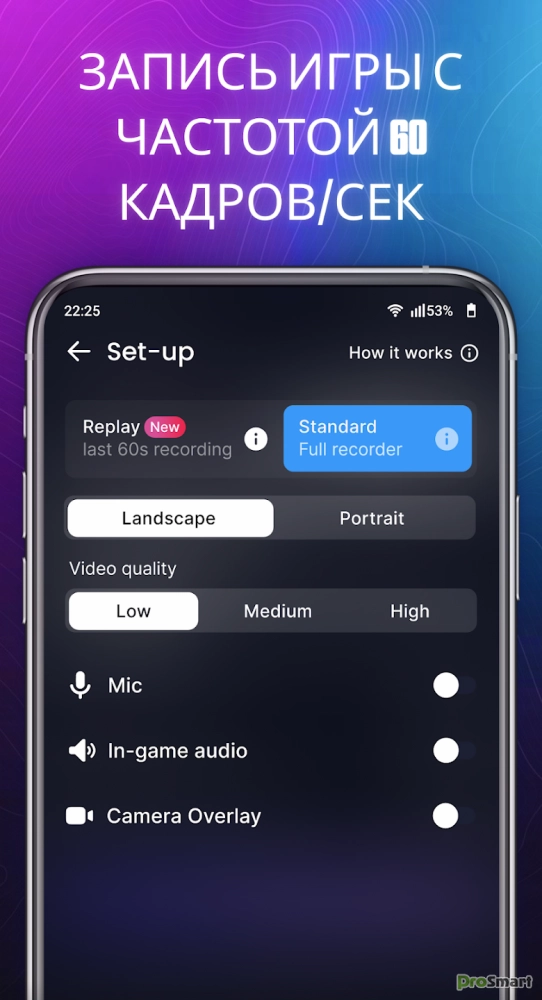 Записывайте игровые видео в 60 FPS с игровым звуком и микрофоном, поддерживаются разные битрейты и режимы разрешения. Без лагов!