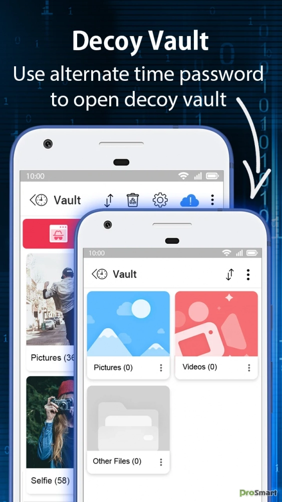 • Поддельный пароль (хранилище-приманка): Скройте файлы в хранилище-приманке при вводе поддельного пароля, чтобы защитить реальную блокировку фотографий галереи. Это альтернативное хранилище с другим паролем, когда вам нужно.