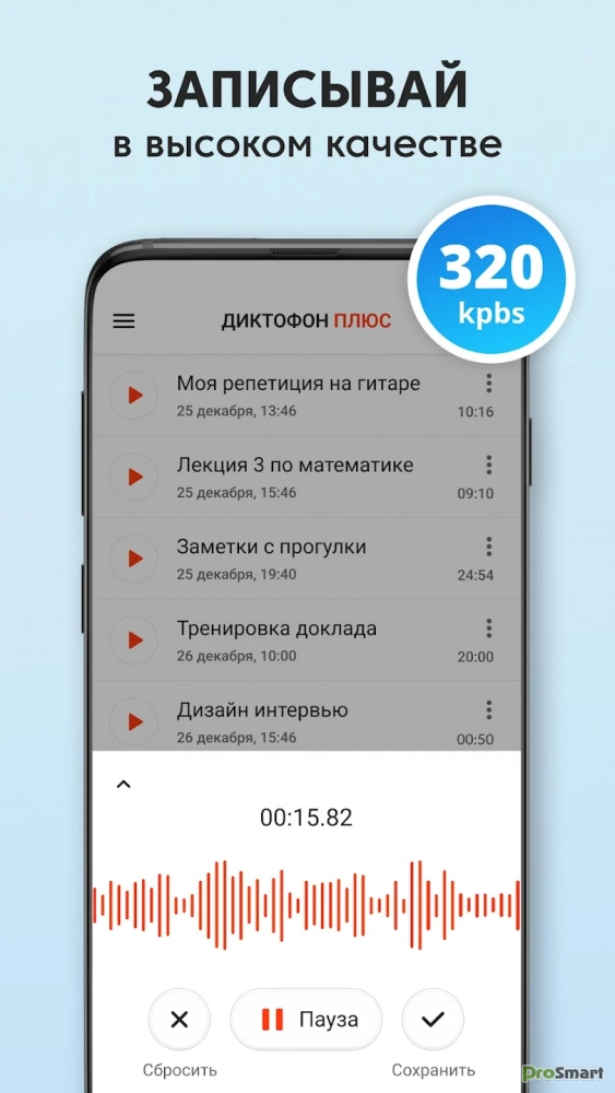 Записывайте мелодии, которые звучат у вас в голове, пока они не ускользнули, чтобы поделиться ими с миром. В этой ситуации приложение Диктофон Плюс идеально заменит вам микрофон.