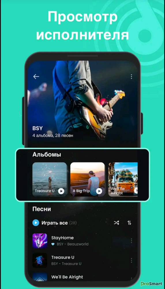 — Управляйте музыка и аудио с помощью сортировки по исполнителю, альбому, жанру или папке.