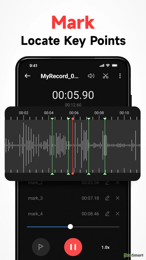 Этот режим позволяет добавлять маркеры во время записи, чтобы легко находить важные моменты во время воспроизведения. Кроме того, вы можете сортировать записи по имени, времени, размеру и продолжительности. Эта функция значительно повысит вашу эффективность!