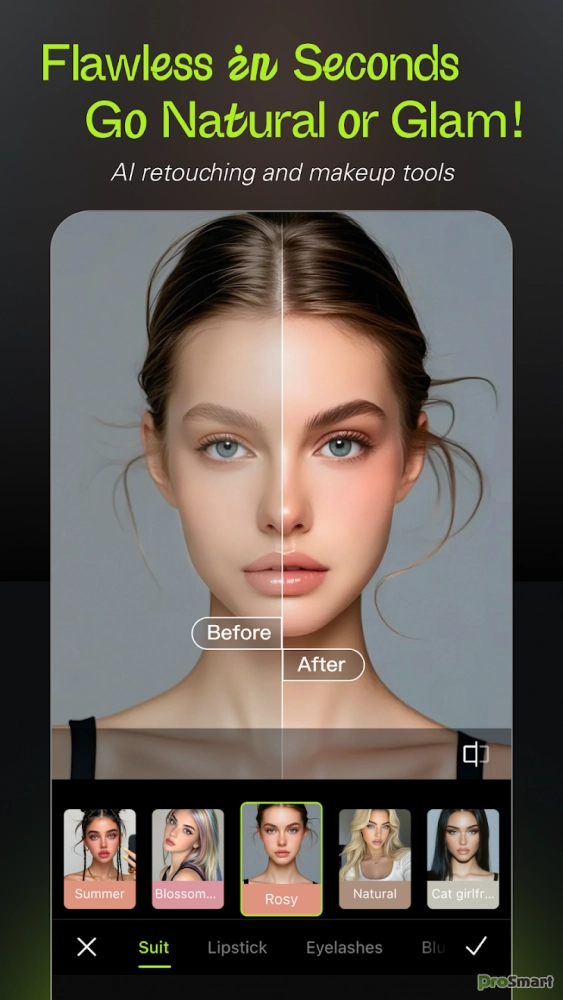 Создавайте свой естественный образ с помощью точных инструментов для сглаживания, изменения формы и улучшения. Корректируйте черты лица с лёгкостью и точностью.