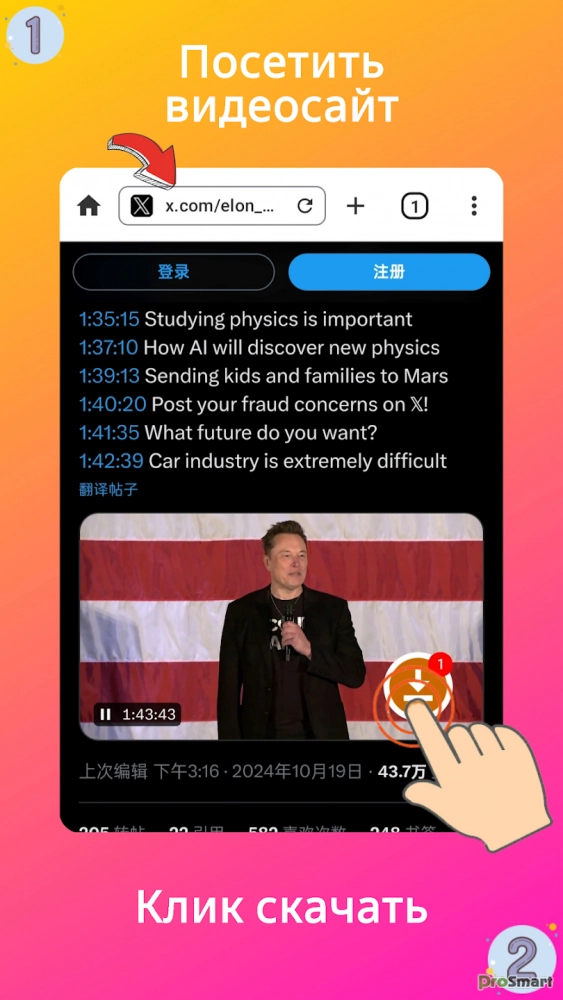 - Автоматическое обнаружение видео: Встроенный браузер автоматически находит видео на веб-страницах. Просто нажмите кнопку загрузки.