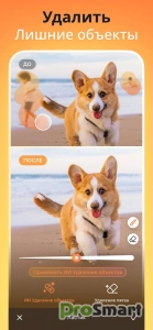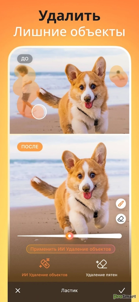 • ИИ-ластик: используйте функции "Ластик" или "Штамп", чтобы убрать лишние предметы и хлам со своих снимков.